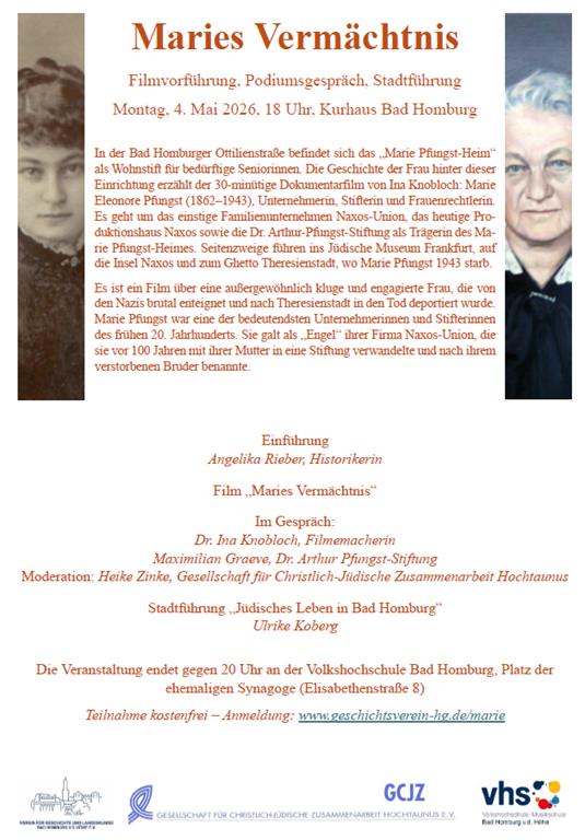 In Zusammenarbeit mit dem Verein für Geschichte und Landeskunde Bad Homburg v.d. Höhe e.V. sowie der Gesellschaft für Christlich-Jüdische Zusammenarbeit Hochtaunus e.V.